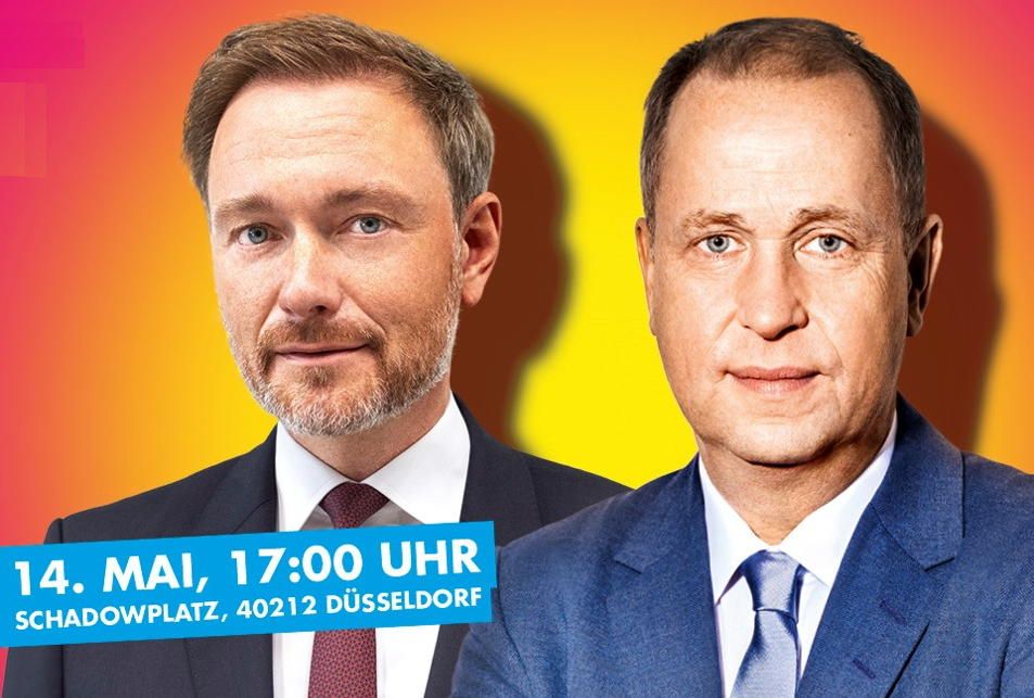 Einen Tag vor der Landtagswahl findet am 14. Mai um 17:00 Uhr das Wahlkampffinale der FDP-NRW auf dem Schadowplatz in Düsseldorf statt. Es sprechen Christian Lindner, Joachim Stamp, Johannes Vogel und Moritz Körner. Im Talk sind auch unsere lokalen Landtagskandidat:innen aus Düsseldorf dabei.