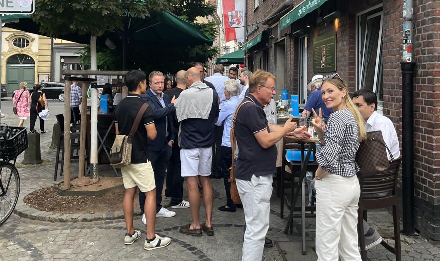 Weiter ging es in der Düsseldorfer Altstadt: Nach dem Ende der meisten Corona-Beschränkungen hat der stv. Kreisvorsitzende Michael Dimitrov die Tradition der After-Work-Veranstaltung wieder aufleben lassen und Mitglieder und Interessierte in die Bar Naseband‘s an der Mühlenstraße eingeladen. Am 19. August trafen sich bei sommerlichen Temperaturen rund 30 Mitglieder und Freunde der FDP Düsseldorf, darunter MdB Marie-Agnes Strack-Zimmermann, in der Altstadt, um im After-Work-Format "Club Liberal" das Wochenende einzuläuten. Gute Gespräche und kühle Getränke sorgten für eine entspannte Atmosphäre zum Kennenlernen und Austauschen abseits der üblichen Parteiveranstaltungen. Ein rundum gelungener Abend, der mit Sicherheit wiederholt wird.