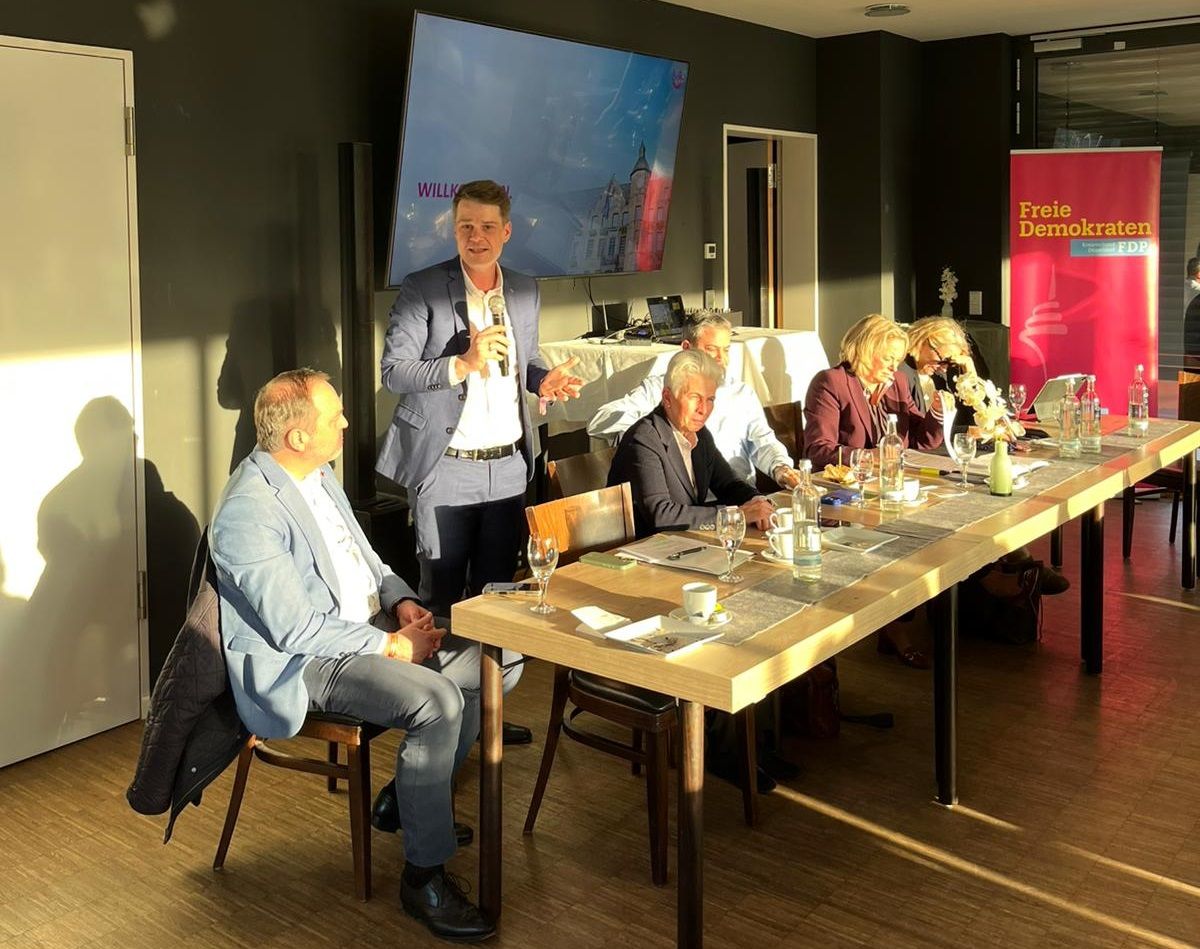 Als weiterer Gast kam Moritz Körner vorbei. Der Generalsekretär der FDP NRW gab einen Ausblick auf die Planungen für den wichtigen Landtagswahlkampf 2027. Für ihn ist klar, dass die Landtagswahl in NRW als „kleine Bundestagswahl" zur Schicksalswahl der FDP wird. Daraus leitete er ab, dass es notwendig sei, unsere möglichen Kandidaten so früh wie möglich mit dem Rüstzeug für einen erfolgreichen Wahlkampf auszustatten.